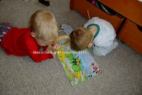 In this instance they were just looking at the book with their magnifying glasses (like they look at the bugs outside) and were checking out the Atlas Beetle, which according to the book can carry more than 8 pounds! Isn’t that crazy!?