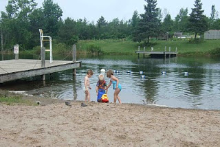 It was warm here last week, so one day I decided to go to a park/beach that was about 20 minutes away. I would never dream of taking both my boys to a beach all by myself, but this one was quite small and very shallow. My boys had a great time playing in the water and the sand and even made some new friends! This day was all about being cooled off and having fun! It just so happens that while doing both of these things they shared, talked, listened and played!