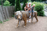 Then there are the fun things you find along the way. We all enjoyed a (rather skinny) tiger the kiddos could sit on. At this particular zoo they also have a little path the kiddos can explore impressed with various animals’ footprints, a goat and cow that they can ‘milk’ (really water) and a farm animal section, which my boys think is very cool!